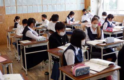 ペアで学習 1−C英語 公開日 2023/05/25 更新日 2023/05/25 芝園の一日 5月25日(木) 2限 1−Cの英語の授業風景です。まず「読む」学習として、教科書の本文を「英文を読む」「日本語訳を話す」をペアで確認しています。