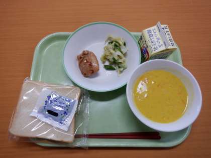 今日の給食 公開日 2023/05/26 更新日 2023/05/26 芝園の一日 5月26日(金) 今日の給食メニューは、 ・食パン ・牛乳 ・照り焼きチキン ・ブルーベリージャム ・かぼちゃのポタージュ ・イタリアンサラダ です。 ポタージュはかぼちゃの甘みが感じられ、美味しかったです。