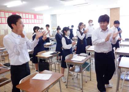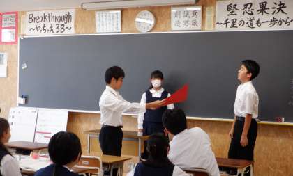 体育大会を終えて、1年生から3年生へメッセージを届けました。