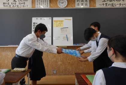 青雲団の1年生から3年生へメッセージを渡しました。