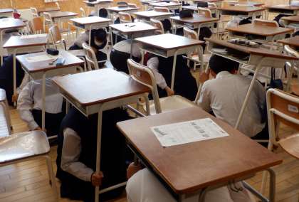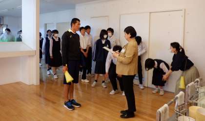 今年度、初めての避難訓練を行いました。今回は、地震・津波を想定しての訓練です。生徒も教員も真剣に行動していました。