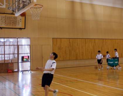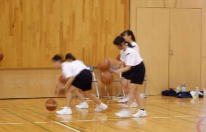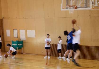 いつも元気いっぱいの女子バスケットボール部と、少人数ながら目標をもって活動している男子バスケットボール部の活動様子です。