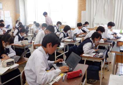 よりよいプレゼンを目指して 2−A国語 公開日 2023/06/01 更新日 2023/06/01 芝園の一日 6月1日(木) 6限 2−Aの国語の授業風景です。「旅行会社の社員として、旅行プランのプレゼンをする」という課題で、資料作りをしています。2−Aでは、5日に研究授業を公開します。当日、どのような発表が見られるのか、今から楽しみです!