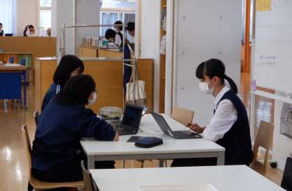 3−Aの国語の授業風景です。「説得力のある構成を考えよう」という課題で学習を進めています。お悩み相談の回答者として、以前学習した「論語」を用いて文章を考え、相手のお悩みを解決するという内容です。