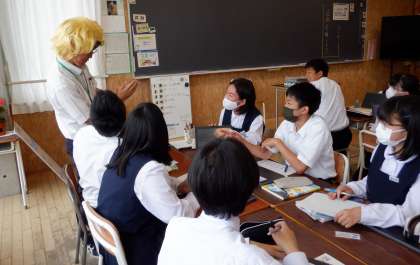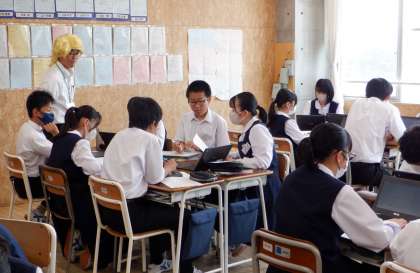 印象に残るプレゼンをしよう 2−C国語 公開日 2023/06/08 更新日 2023/06/08 芝園の一日 6月8日(木) 2限 2−Cの国語の授業風景です。「印象に残るプレゼンをしよう」という課題で授業をしています。外国の人に扮した先生に、旅行のプレゼンをします。楽しく授業をしています。