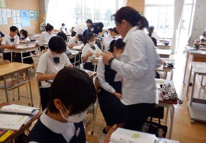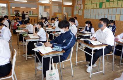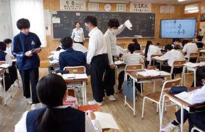 平方根の近似値 3−C数学 公開日 2023/06/09 更新日 2023/06/09 芝園の一日 6月9日(金) 2限 3−Cの数学の授業風景です。「平方根の近似値」について学習をしています。問題を解く場面では、友達と教え合ったり、一人でじっくり考えたりと自分に合った方法で学びを深めています。