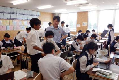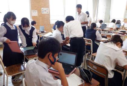 スピーキングテストに向けて 2−C英語 公開日 2023/06/13 更新日 2023/06/13 芝園の一日 6月13日(火) 3限 2−Cの英語の授業風景です。スピーキングテストに向けて準備を進めています。ALTの先生に「自分のおすすめのお店」を紹介します。先生に伝わるように、そして英語でやりとりができるよう頑張っています。
