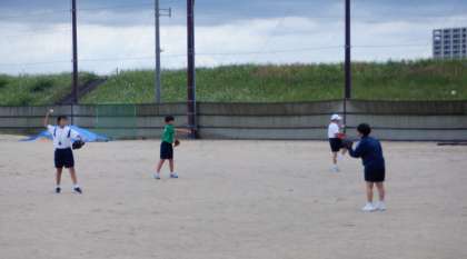 運動部の生徒は、大会に向けて練習に励んでいます。画像は、野球部です。野球部は東部中学校との合同チームで出場します。