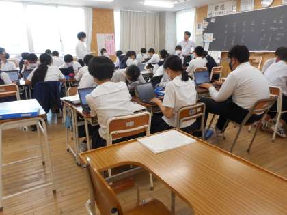 6/14(水) 5・6限 2年総合 金沢校外学習事前学習 公開日 2023/06/14 更新日 2023/06/14 芝園の一日 校外学習のスローガンが発表されました。 『絆 〜助け合い 楽習し合い 高め合い〜』 です。GSSからの発表に、全員身を引き締めていました。 その後、班別学習コースをそれぞれの班で考えました。 「どうしようか」「ここもいいなぁ」など、来月の校外学習に向けて準備を整えています。
