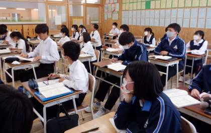 3−Cの国語の授業風景です。「具体と抽象の関係」について学習をしています。