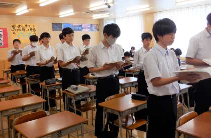合唱大好き 3−A音楽 公開日 2023/06/23 更新日 2023/06/23 芝園の一日 6月23日(金) 3限 3−Aの音楽の授業風景です。合唱曲「COSMOS」の練習をしています。3年生は、歌うことがとっても大好き!そして、とても上手です。