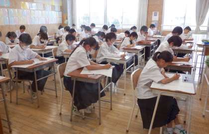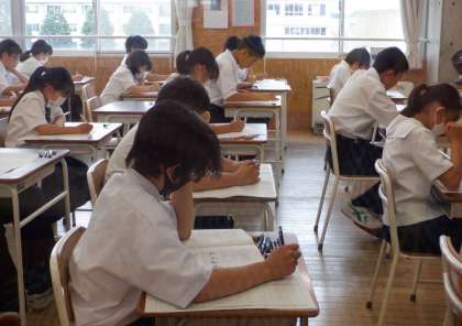 画像上は1−C、下は1−Bです。1年生にとっては初めての期末考査で、9教科のテストを行います。1年生、頑張っています。