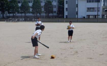 野球部の活動の様子です。グラウンドに出ると、いつも元気のよいあいさつをしてくれる野球部員。爽やかです!