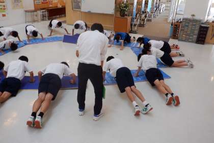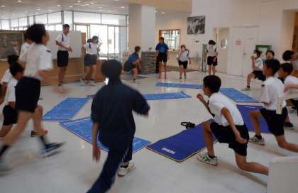 陸上競技部の活動の様子です。全員で声をかけ合い、励まし合いながらトレーニングに励んでいます。