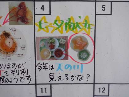 今日は「七夕献立」です。ひと足早いですが、見た目も可愛らしく美味しかったです。