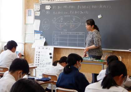 2−Cの数学の授業風景です。「速さ・時間・道のり」の文章問題の解き方を学習いています。