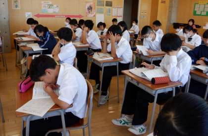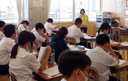 1−Cの音楽の授業風景です。いよいよ合唱コンクールで歌う曲を決定します。候補として選んだ4曲を聞き比べています。どれにしようかな〜