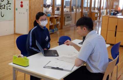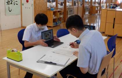 スピーキングテスト 2−B英語 公開日 2023/07/06 更新日 2023/07/06 芝園の一日 7月6日(木) 1限 2−Bの英語の授業風景です。今日はスピーキングテストを行いました。端末を活用して、英語でのプレゼン。上手くできたかな〜?