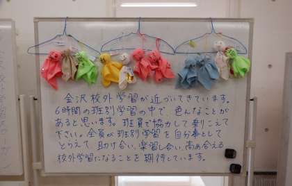 これは、11日(火)に実施する金沢校外学習に向けて生徒が作ったものです。いい天気に恵まれますように。