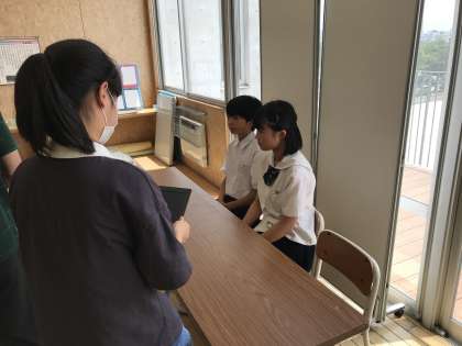 小中合同fresh朝活のお礼に小学校へ放送しにいきました。放送の仕方を小学生に教えてもらっています。様々な場面で連携し、芝園小・中学校を盛り上げています!