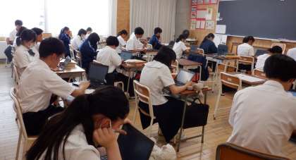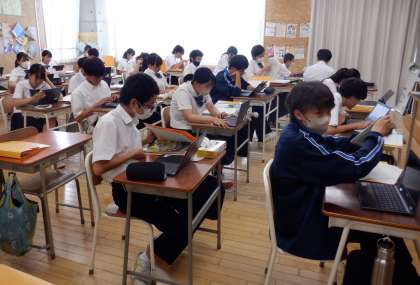 3年生の総合的な学習の時間の様子です。中学校生活最後の課題学習となります。テーマは「持続可能な社会に向けての提言」。現在社会ではどんな問題が起きているのか、その問題に対して自分は何ができるか・・・じっくり考えを膨らませています。