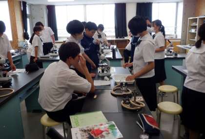 細胞の観察 2−B理科 公開日 2023/07/13 更新日 2023/07/13 芝園の一日 7月13日(木) 5限 2−Bの理科の授業風景です。細胞の観察をしています。「気孔が見えました〜」と嬉しそうに言っている生徒も。観察は楽しいですね。