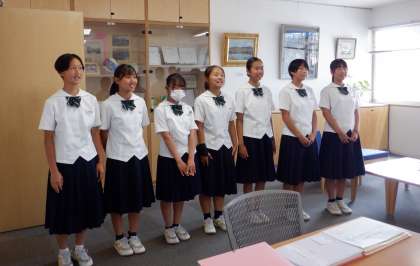 健闘を祈る! 公開日 2023/07/14 更新日 2023/07/14 芝園の一日 7月14日(金) 富山県中学校選手権大会並びに県民体育大会に出場する選手、富山県吹奏楽コンクールに出場する吹奏楽部、少年の主張に出場する生徒の激励会を行いました。生徒は、大会に向けての決意を述べてくれました。 一人一人、自分がもてるすべての力を出し切ってください! 健闘を祈る!