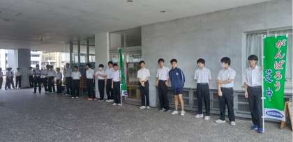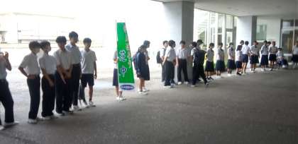 今学期最後のFresh朝活 公開日 2023/07/20 更新日 2023/07/20 芝園の一日 7月20日(木) 7:50 おはようございます。爽やかな朝です。 今学期最後のFresh朝活です。多くの生徒が参加して、笑顔いっぱいの挨拶が交わされています。 ステキな朝の光景です!