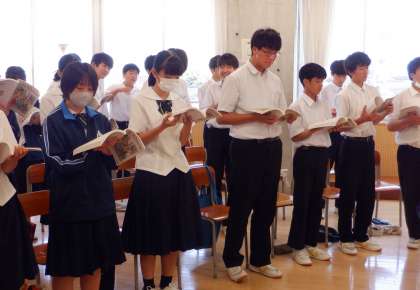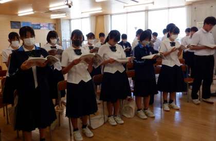 3−Aの音楽の授業風景です。合唱曲「COSMOS」で、合唱の練習をしています。とっても美しい響きです。
