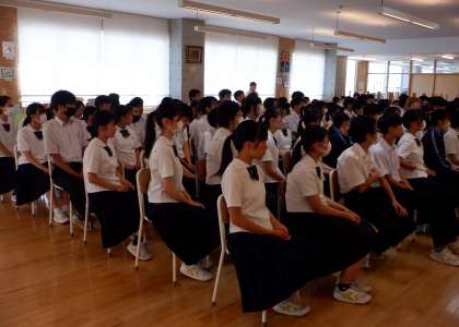1学期を振り返って 3学年 公開日 2023/07/21 更新日 2023/07/21 芝園の一日 7月21日(金) 3年生は「1学期を振り返って」の学年集会をしました。先生から、夏休みの過ごし方について話を聞いています。先生と目をつないで、背筋を伸ばして話を聞く姿勢、ステキですね。