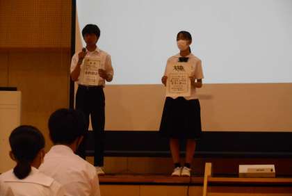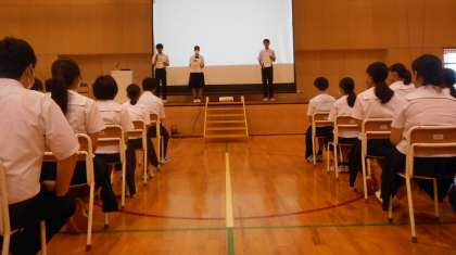7月24日(月) 8:35 終業式に先立ち、受賞報告会をしました。 3名のみなさん、おめでとうございます!