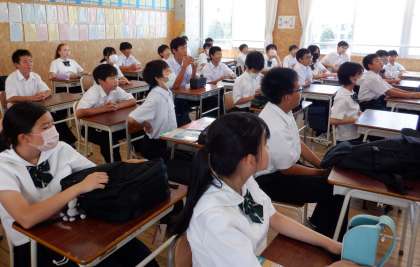 1学期 最後の学活 1年生 公開日 2023/07/24 更新日 2023/07/24 芝園の一日 7月24日(月) 終業式の後は、各クラスで学活をしました。1−Aでは、夏休みの過ごし方について担任から最後の確認がありました。また、担任が一人一人の頑張ったところを伝えながら通知表を手渡しました。