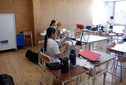 吹奏楽部は、コンクールに向けて基礎練習に励んでいます。