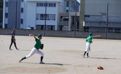 今日も部活動を頑張っています。画像は、野球部です。大きな声をかけ合ってのキャッチボール。ステキですね。