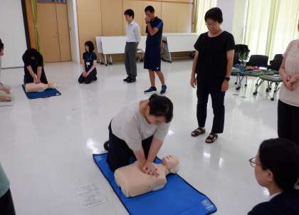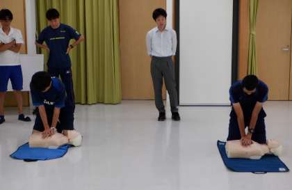 画像は、昨日行った「救命講習会」の様子です。富山消防署から3名の指導員の方にきていただき、救命について学びました。いざというときに、落ち着いて対処できるよう日頃の訓練が大切ですね。