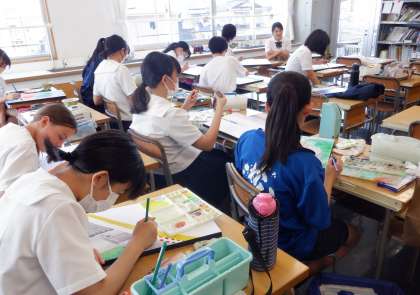 美術部の活動の様子です。個性溢れる作品作りに励んでいます。