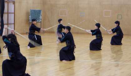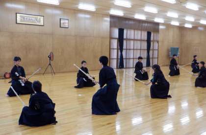 剣道部の活動の様子です。全員で声をかけ合って、基礎の稽古に励んでいます。