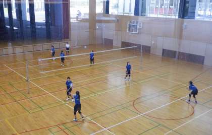 熱中症対策のため、すべての部活動を朝の早い時間から始めて、10:00には終了することにしました。そのため、バレーボール部の活動は芝園小学校の体育館をお借りして実施しています。