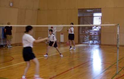 部活動頑張っています! その6 公開日 2023/08/08 更新日 2023/08/08 芝園の一日 8月8日(火) 9:00 バドミントン部の活動の様子です。コーチの指導の下、基本の動きを確認しています。