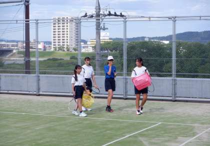 8月9日(水) 8:50 女子ソフトテニス部です。コートでの練習を早めに切り上げて、屋内への移動です。