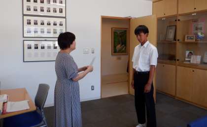 激励会では「中学校では、最後の全国大会となります。悔いの残らないよう、精一杯頑張ってきます」と力強く話してくれました。