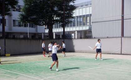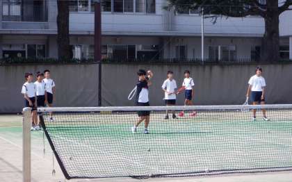 部活動 頑張っています! その4 公開日 2023/08/18 更新日 2023/08/18 芝園の一日 8月18日(金) 9:00 男子ソフトテニス部の活動の様子です。美しいフォームで、力強く返球しています。