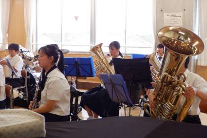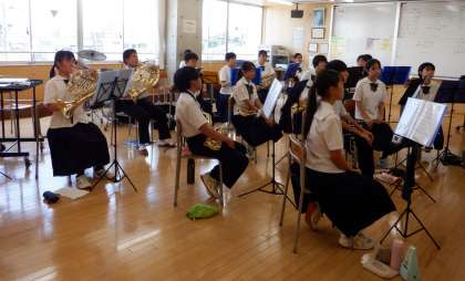 今日の部活動 その4 公開日 2023/08/21 更新日 2023/08/21 芝園の一日 8月21日(月) 9:00 吹奏楽部の活動の様子です。9月のコンサートに向けて、練習にも力が入ります。「一音入魂」の精神で、ステキな演奏を!