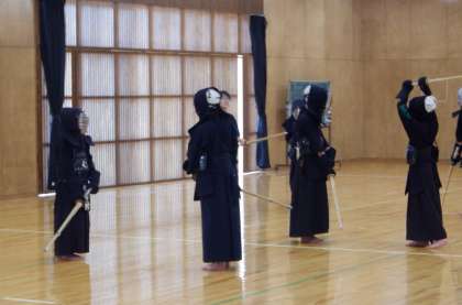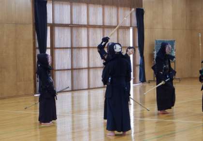 剣道部の活動の様子です。暑い中、防具を着けての稽古は大変だと思いますが、気合いを入れて稽古に励んでいます。
