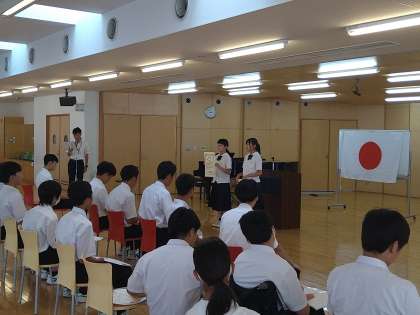 夏休み中に、スポーツや意見発表等で優秀な成績を収めた生徒が報告をしました。