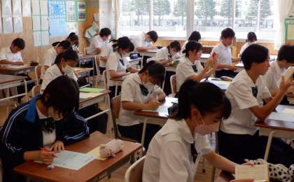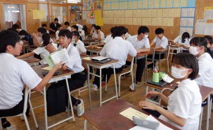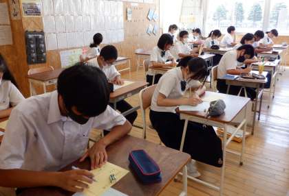 3年生の学活のようすです。久しぶりにクラスメートと楽しく話をしているクラスや、2学期の目標を書いているクラスもありました。