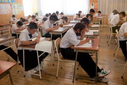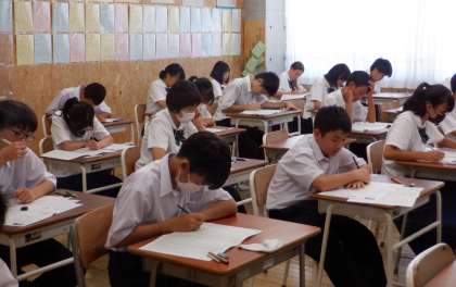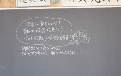 画像は、1年生の夏休み明けテストの様子です。夏休み中の取組の成果を、発揮しましょう。頑張れ!