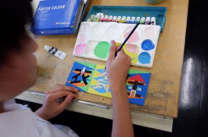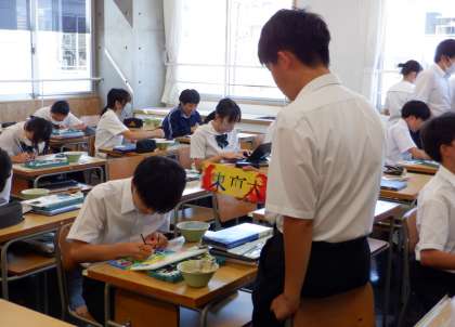 2−Bの美術の授業風景です。「3文字のデザイン」もいよいよ完成です。個性的でステキな作品です!