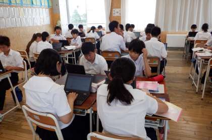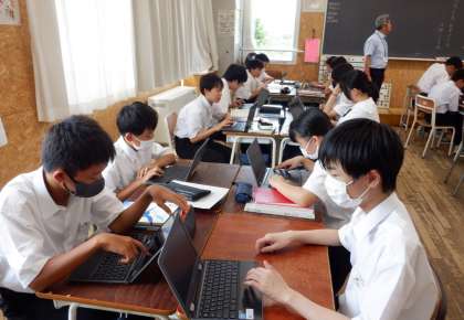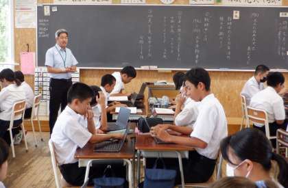 1−Aの国語の授業風景です。「大人になれなかった弟たちに」の教材の背景である戦争について、どのような状況だったのか調べてまとめています。