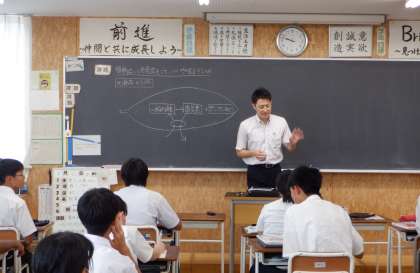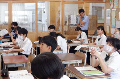 2−Aの理科の授業風景です。「光合成のしくみ」について学習しています。ペア学習を取り入れたり、TTの先生に質問したりと「分かる授業」に努めています。